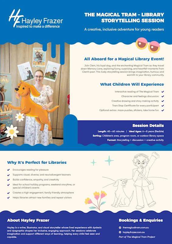 Join Hayley Frazer, a remarkable storyteller, on an enchanting journey that’s taking its own sweet time—but trust us, it’s worth every moment! Inspired by her grandfather’s real-life adventures as a tram conductor in Adelaide, she’s busy weaving a new tale called *The Magical Tram*. Though the story is arriving a bit later than planned, every detail is crafted with extra love and imagination. And guess what? You’re invited to be part of this extraordinary adventure!